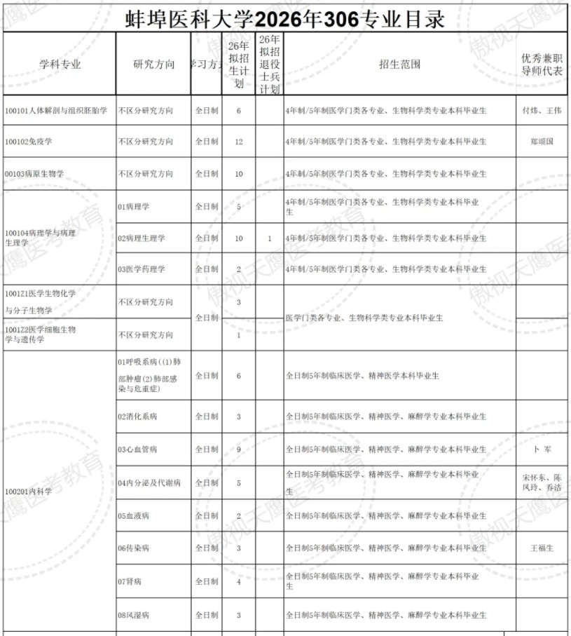 蚌埠医科大学2026年临床医学硕士研究生招生明细